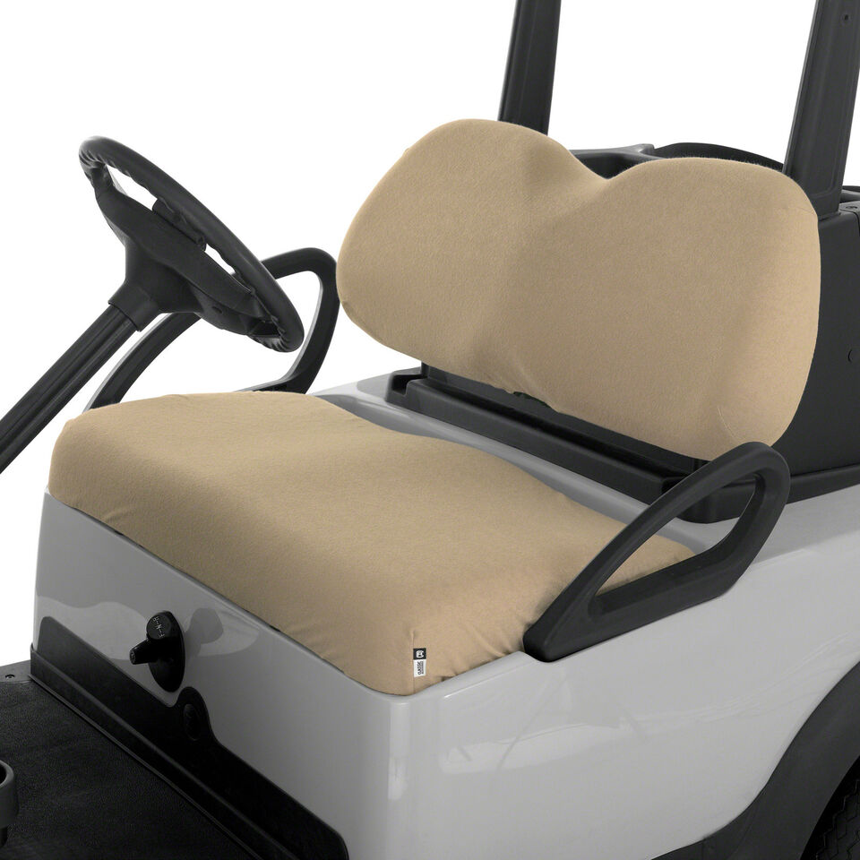 Чехлы для гольфкара предназначены для сидений – они обеспечат мягкость и тепло, а также могут выступить в роли удобного пледа для ног. Поскольку гольфкар – это автомобиль, открытый со всех сторон, необходимо изготовить чехол из таких материалов, которые легко очищаются, практически не загрязняются, и обладают гидрофобными свойствами.