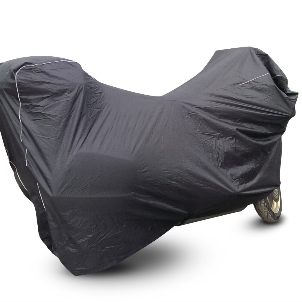 Чехол тент для мотоцикла выполнен из прочного, влагоустойчивого материала. Ткань отличается устойчивостью к ультрафиолетовому излучению, влаге, механическим и повреждениям и физическим нагрузкам. Функциональный аксессуар обладает такими преимуществами, как:• мобильность;