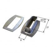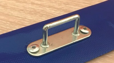 - Скоба ремень – предназначена для крепления мягких окон к конкретной поверхности. Скобы устанавливаются в материал основной конструкции. Сквозь люверсы окно насаживается на скобы. Ремешки, просунутые через скобы, предназначены для натяжения штор ПВХ.