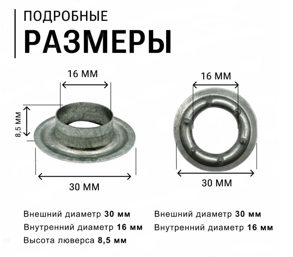 Мы хотим предложить вам приобрести люверс с диаметром 16 мм. Эти люверсы изготавливаются из оцинкованной стали, которая является очень качественным и устойчивым к внешним воздействиям металлом. Вес данного люверса составляет 0,004 килограмма. У нас вы можете приобрести любое количество люверсов, оптовым покупателям мы делаем приятные скидки и предлагаем комфортные условия сотрудничества. Кроме того, у нас есть доставка по России.