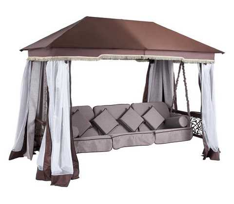 Качели - это любимое место отдыха после тяжёлого дня, замечательное развлечение для детей, а также просто место для романтичного и комфортного времяпровождения. Конечно, тент не является обязательным атрибутом для качелей, однако, благодаря ему можно уберечь конструкцию и все её мягкие элементы от дождя, пыли, насекомых, утренней росы.