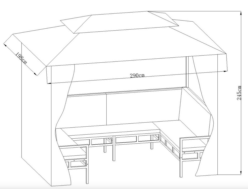 Краткое описание «Комплект для павильона садового с 3 скамьями 2,9х2 м»