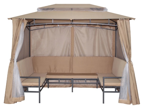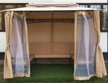 У нас вы можете купить комплект для павильона садового с тремя скамьями 2,9 х 2 м. В комплекте находится тент, шторы, москитные сетки. Изготовлен данный комплект из очень прочных и качественных материалов, которые легко выдерживают их использование на улице. Это очень удобная беседка с мягкими диванами, которая хорошо украсит ваш садовый участок, а также сделает ваш отдых более комфортным. Кроме того, у нас вы можете заказать изготовление матраса.
