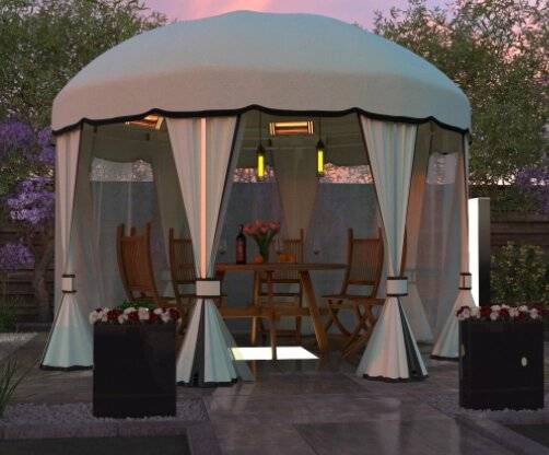 Краткое описание «Комплект на шатер Premium Д 4 м: тент-крыша+ шторы+ антимоскитные сетки»