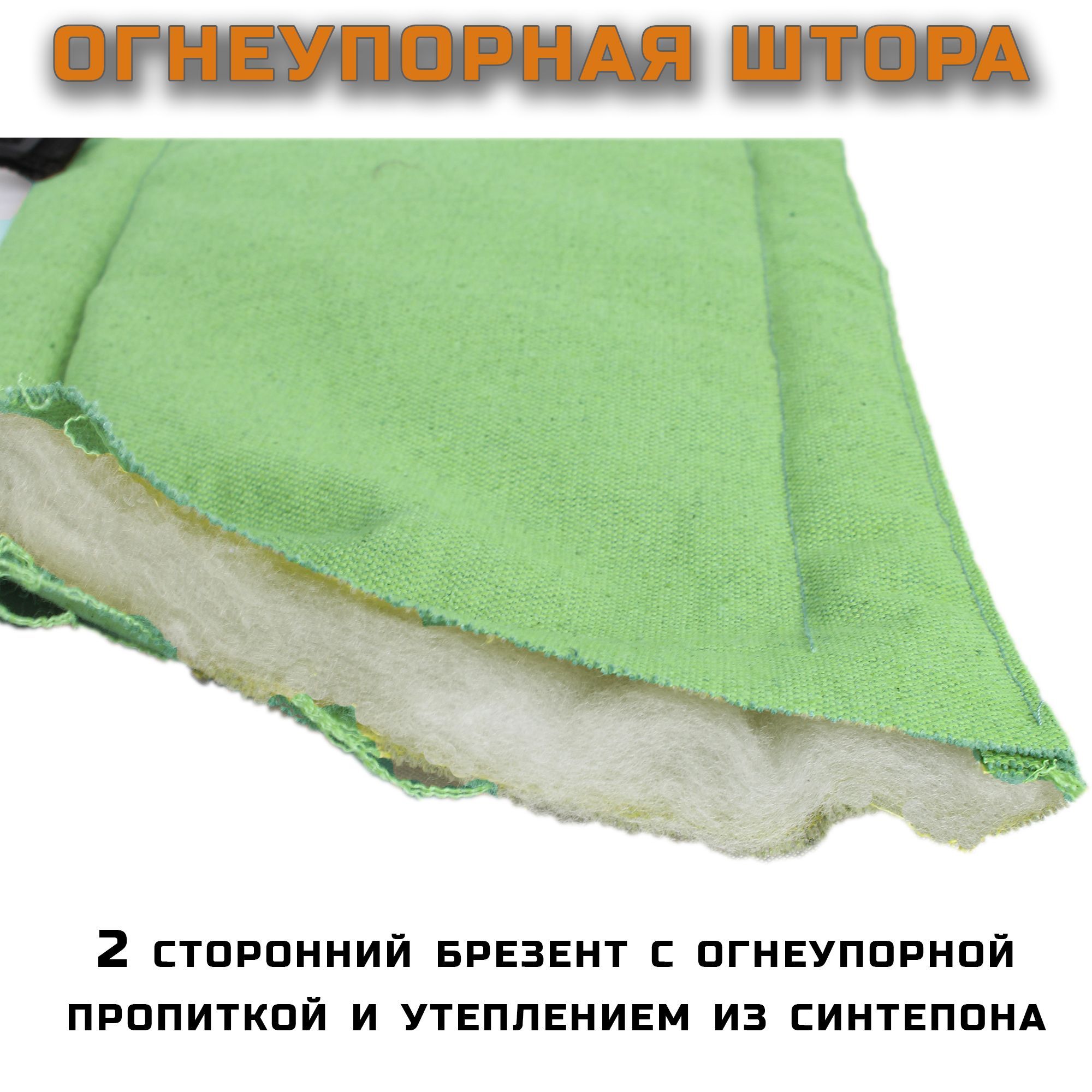 Штора изготовлена из усиленного огнеупорного брезента плотностью 420 г/кв.м, соответствует нормам ГОСТ.