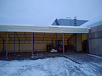Навес из ПВХ материала для промышленных сооружений, ангаров имеет широкий размерный ряд, что позволяет подобрать аксессуар в соответствии с габаритами конструкции.