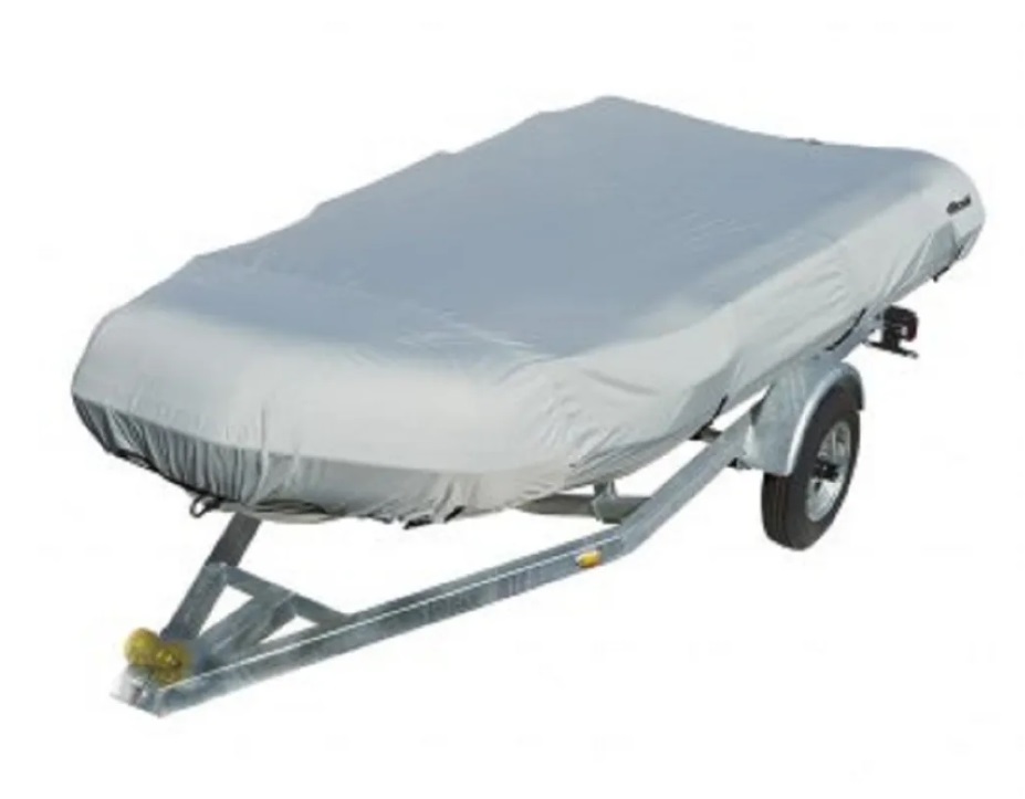 Тент транспортировочный выполнен из непромокаемой легкой ткани (разные расцветки). Тент устанавливается на лодки длиной 390 см. Назначение тента: хранение лодки на стоянках, транспортировка. Тент для хранения упаковывается в специальный чехол. При необходимости тент можно легко поддавать стирке или чистке. После установки на лодку тент полностью повторяет размеры и форму судна, поэтому подбирается точно по размерам.
